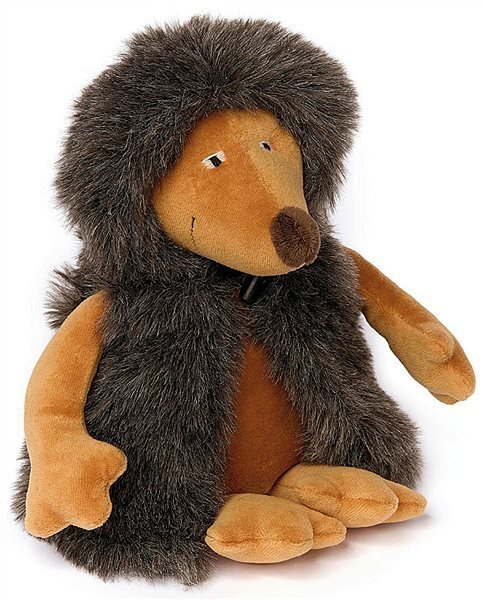 Мягкий ёжик из серии Sigikid, больше похож на мишку ибо на него одет меховой жупан, закрывающий его колючки. У него есть имя - Игель Пигель. В целом выглядит мило, но одежка с него не снимается. Если во время игры пачкает его, можно постирать, при этом первозданный вид не теряется. Сшит весьма качественно, все элементы (руки, ноги, голова) - крепко держаться на своем месте.