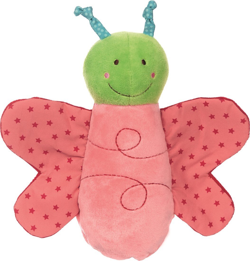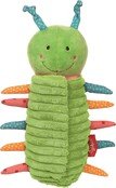 Мила маленька гусінь – ідеальний компаньйон для новонароджених з 3 місяців. Гусениця відноситься до серії розвиваючих іграшок і сприяє розвитку малюка. У крилах вбудована потріскує фольга, а в голівці симпатичного комахи – брязкальце, яка м'якими брязкальцями винагороджує кожен рух метелики. На животі передбачена застібка на липучці, яку можна відкрити, вона перетворює гусеницю в метелика.