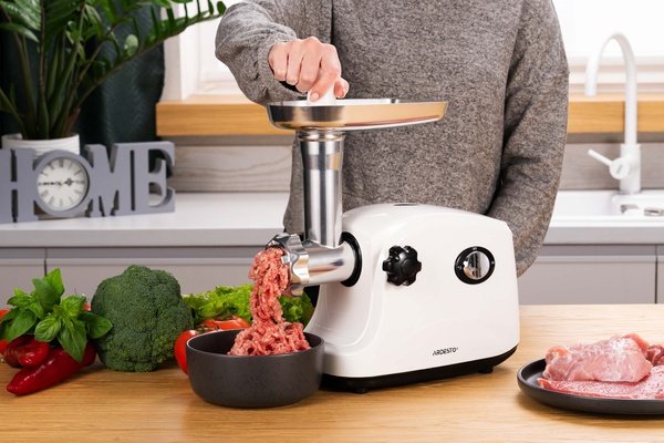 Часи, коли м'ясорубка була простим пристроєм для подрібнення м'яса, давно минули. Виконана в білому кольорі, ARDESTO MGA-1735R потужністю 1700 Вт стане неперевершеним доповненням до будь-якої сучасної кухні. З огляду на гідну продуктивність - 1,6 кг/хв - пристрій швидко і легко впорається з великою кількістю м'яса різної жорсткості, навіть з жилавим і жирним. Ба більше, за допомогою додаткових аксесуарів, наявних у комплекті, м'ясорубка стане в пригоді для приготування ковбасок і кеббе.