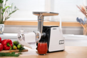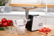Модель Ardesto MGA-2300W вдало поєднує елегантність і потужність, вона розкриває безмежний світ кулінарних можливостей. Функція реверсу, решітки різного діаметра, а також спеціалізована решітка для ковбасок - це ще не всі переваги MGA-2300W. Цей прилад стане в пригоді для тиску соку з томатів або ягід. Приготування домашніх ковбас і кеббе? Легко!
