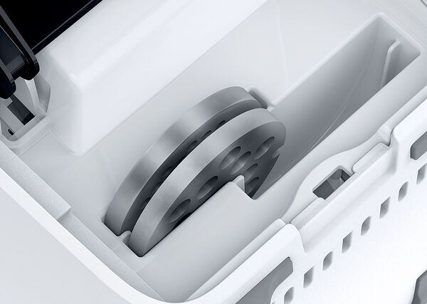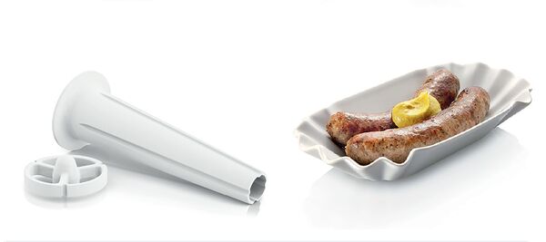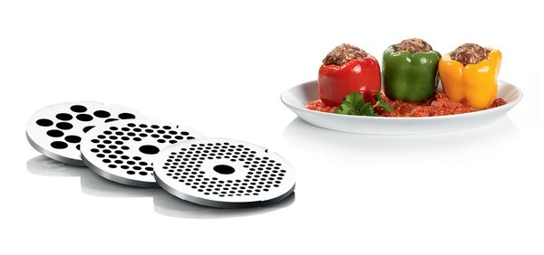 Відтепер вам більше не доведеться шукати десь на кухні потрібний диск для м'яса. Для їх зберігання передбачений спеціальний відсік, інегрірованний в корпус приладу. Тепер вони зберігаються в повному порядку і завжди під рукою.