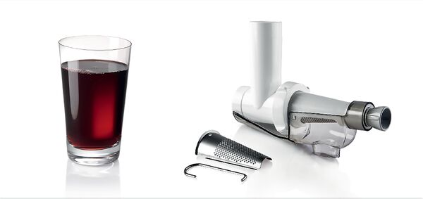 Приготування томатного соку вимагає певних зусиль. Але за допомогою насадки-преса це зробити досить легко. Шнековая соковижималка ефективно справляється також з ягодами, м'якими фруктами і овочами. Сік виходить чистим, без кісточок і шкірки. Використовуючи один з двох сітчастих фільтрів, можна регулювати кількість м'якоті в соку.