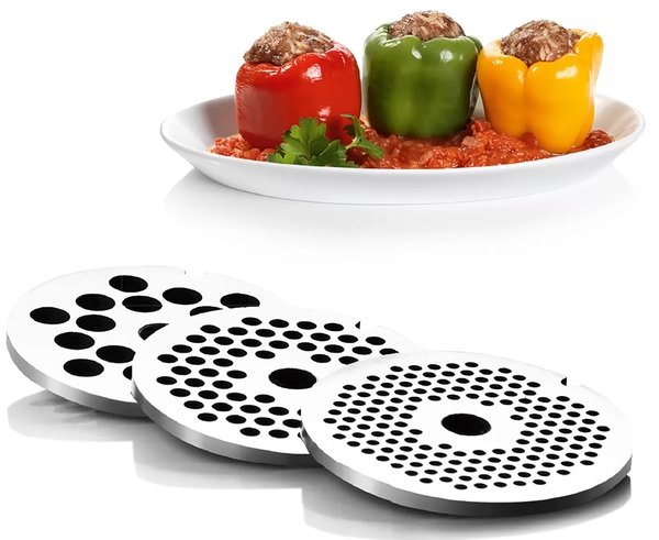 Диски зроблені з високоякісної нержавіючої сталі, яка безпечна для їжі. Завдяки трьом різним дискам Ви можете перемолоти будь-які продукти.