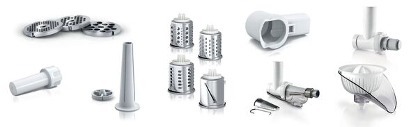 | Насадки | Для ковбасок, Для томатів і ягід, Соковитискач для цитрусових, Соковитискач шнековий, Тертка-скиборізка, Тертка-шатківниця |