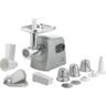 | Комплектація (можливі зміни в різних поставках) | Барабан для тертки-шатківниці – 3 шт., Диск – 3 шт., Документація, Металевий лоток для м'яса, М'ясорубка, Набір для ковбасок, Тертка, Товкач – 2 шт., Шнековий соковитискач |