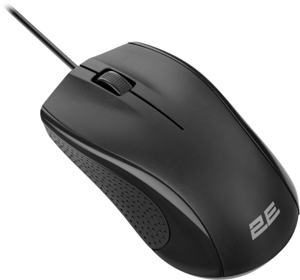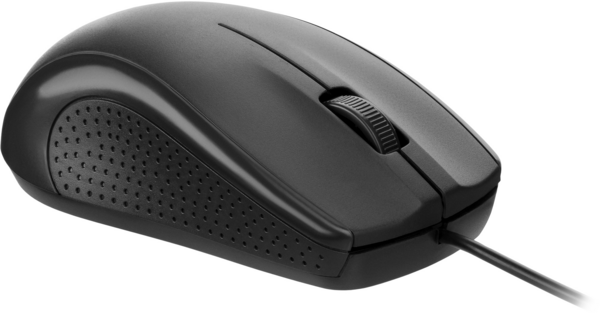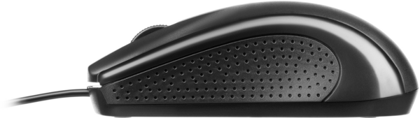 Класична дротова мишка стандартного розміру для виконання щоденних завдань. Матовий пластик, фактурні бічні вставки роблять мишку зручною для тривалого використання.
