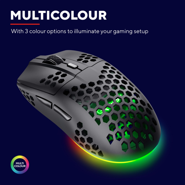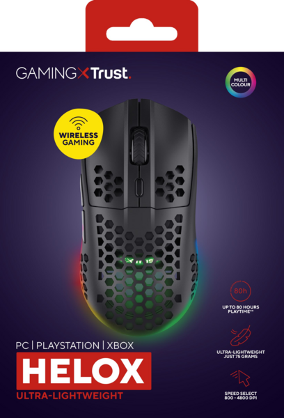 Продемонструйте свої кольори за допомогою епічного дихаючого RGB-підсвічування цієї миші. Сяйво, що проникає крізь унікальний дизайн Helox Wireless, неодмінно додасть вашій грі ще більшої крутості.