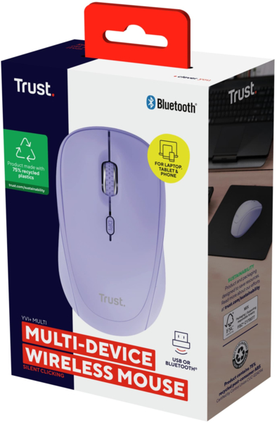 - Миша Trust Yvi+ Compact Multi-Device, WL/BT/USB-A, Purple (25583_TRUST)