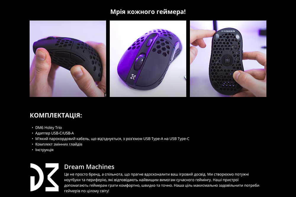 Ігрова миша Dream Machines DM6 HOLEY Trio WL Black (DM6_HOLEY_TRIO)