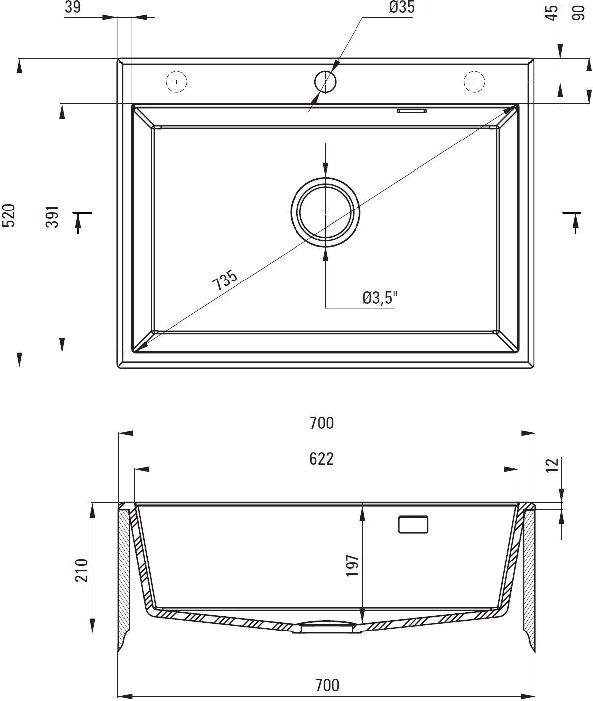 Крім стандартного отвору під змішувач, раковина має спеціальні фрезеровані отвори. Їх необов'язково використовувати, але якщо ви хочете встановити дозатор для рідини для миття посуду, або автоматичний клапан, це дуже спростить адаптацію продукту до ваших уподобань. Усе, що вам потрібно зробити, — це самостійно виконати отвори в місцях фрезерованих отворів.