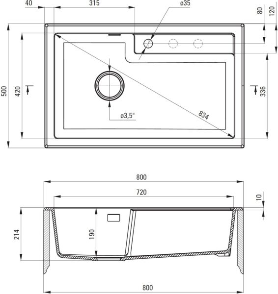 - Мийка кухонна Deante Eridan, 800х500х214мм (ZQE_N10B)