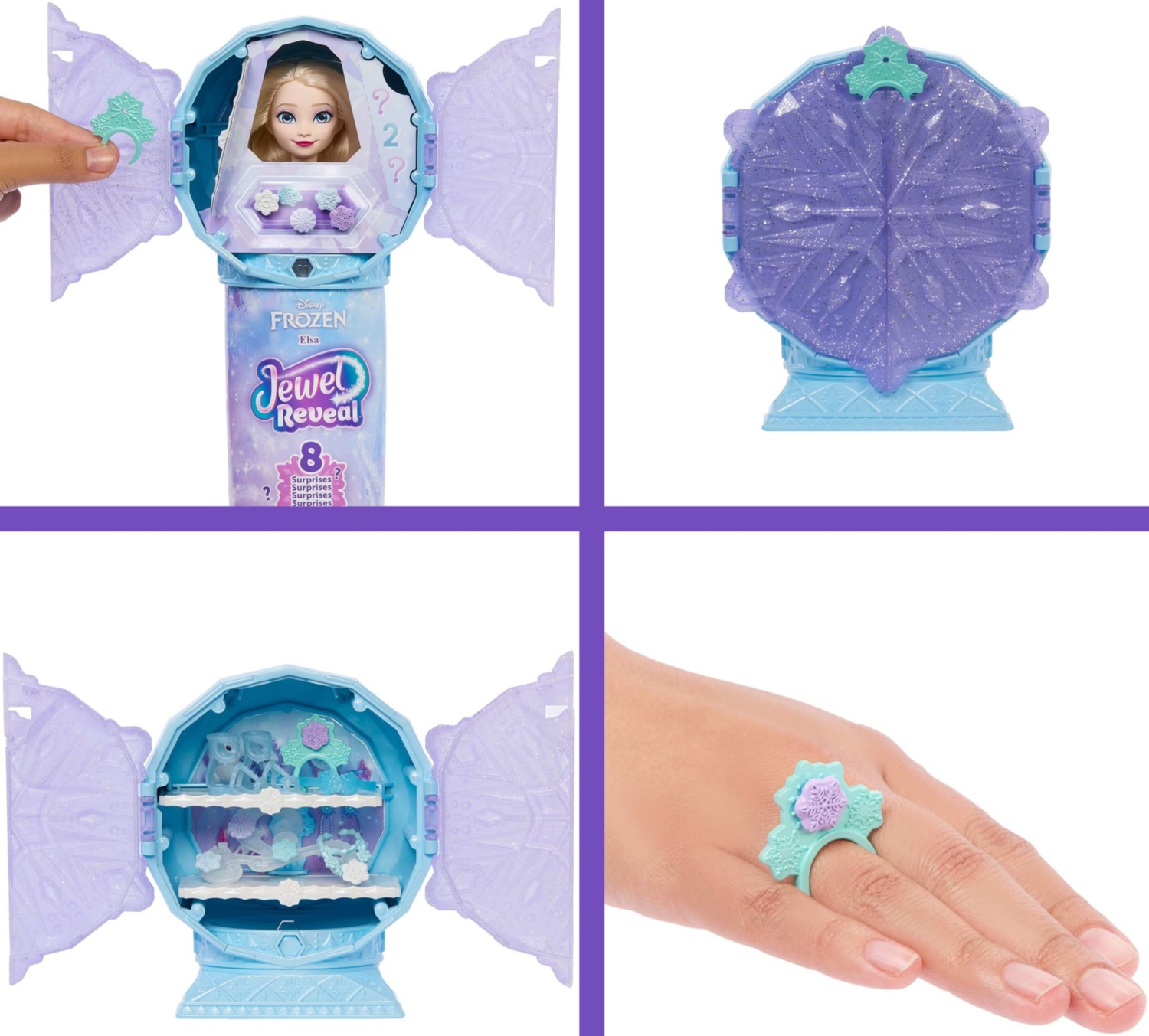 Відкрийте для себе магію диснеївського мультфільму "Крижане серце" разом із лялькою Ельзою із серії "Jewel Reveal". Пригоди починаються з першої секунди: варто лише відкрити великий коштовний камінь у формі сніжинки на верху пакування, як перед вами з’явиться чарівна королева Ельза та набір прихованих аксесуарів, натхненних її дивовижною історією. Лялька не може стояти самостійно.