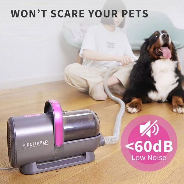Вбудована функція пилососа допомагає збирати шерсть, що випадає, мінімізуючи безлад під час сеансів грумінгу. Пилосос ефективно збирає до 99% шерсті домашніх тварин, підтримуючи чистоту у вашому домі та зменшуючи кількість алергенів у повітрі. Незважаючи на потужне всмоктування, PETKIT Grooming Kit LM4 працює тихо, забезпечуючи безшумну роботу для чутливих до шуму домашніх улюбленців. Малошумний двигун створений для того, щоб домашні улюбленці були спокійними та розслабленими, перетворюючи грумінг на приємну рутину.