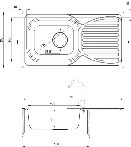 Мийка з нержавіючої сталі стійка до ударів та високих температур (до 250°C). Сталь містить 18% хрому та 10% нікелю. Така комбінація дає красивий, естетичний та незмінний колір протягом усього терміну служби. Нержавіюча сталь легко очищується та не сприяє розмноженню бактерій.