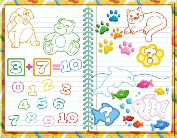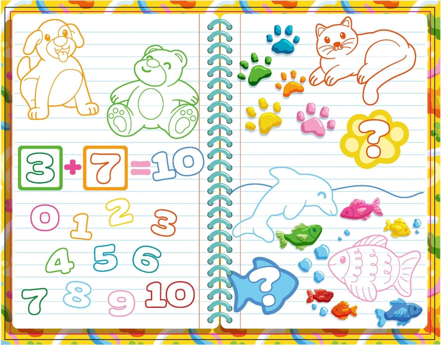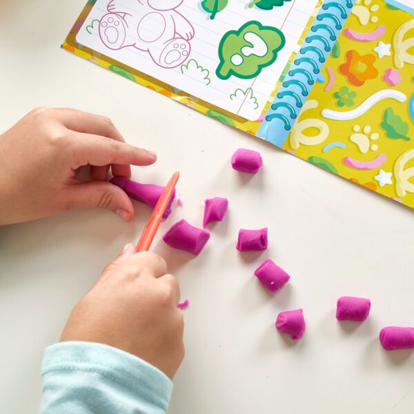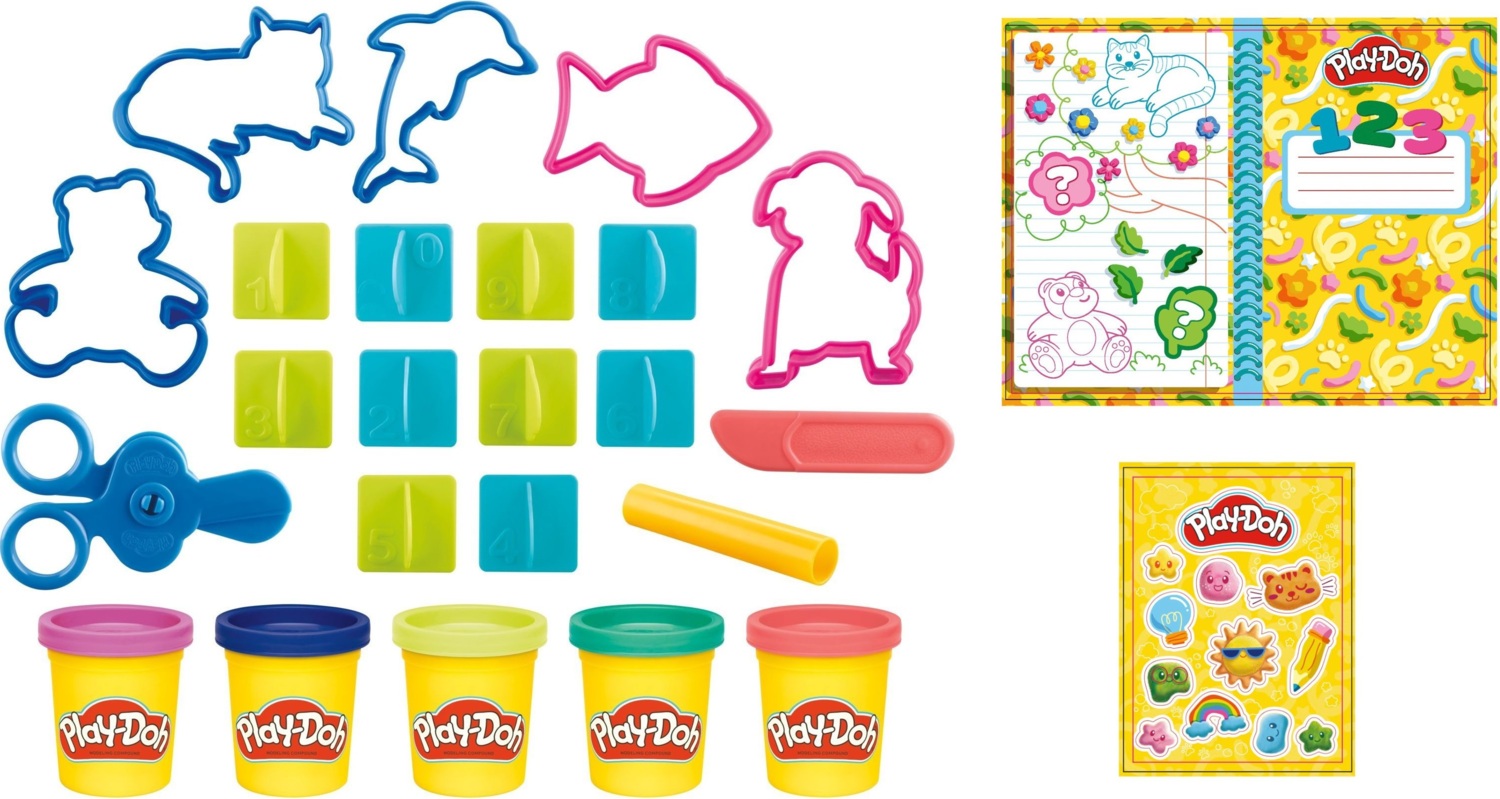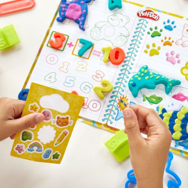 Особливістю набору є двосторонній килимок, стилізований під шкільний зошит. Він не лише містить цікаві завдання з тваринами та цифрами, а й надійно захищає меблі від маси для ліплення. Для перших кроків у математиці передбачено 10 штампів із цифрами, а щоб навчання було ще веселішим, діти можуть створювати фігурки собак, котів, риб, дельфінів і ведмедів за допомогою спеціальних формочок.