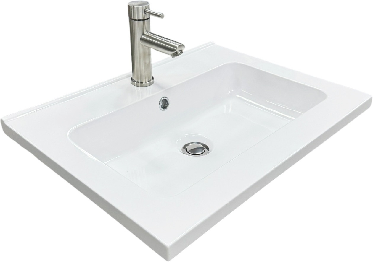 Накладну чашу раковини, можна встановити на будь-яку основу, стільницю на ніжках, тумбу або консоль, що забезпечує легкий та швидкий монтаж, для зручності отвір під змішувач вже присутній.