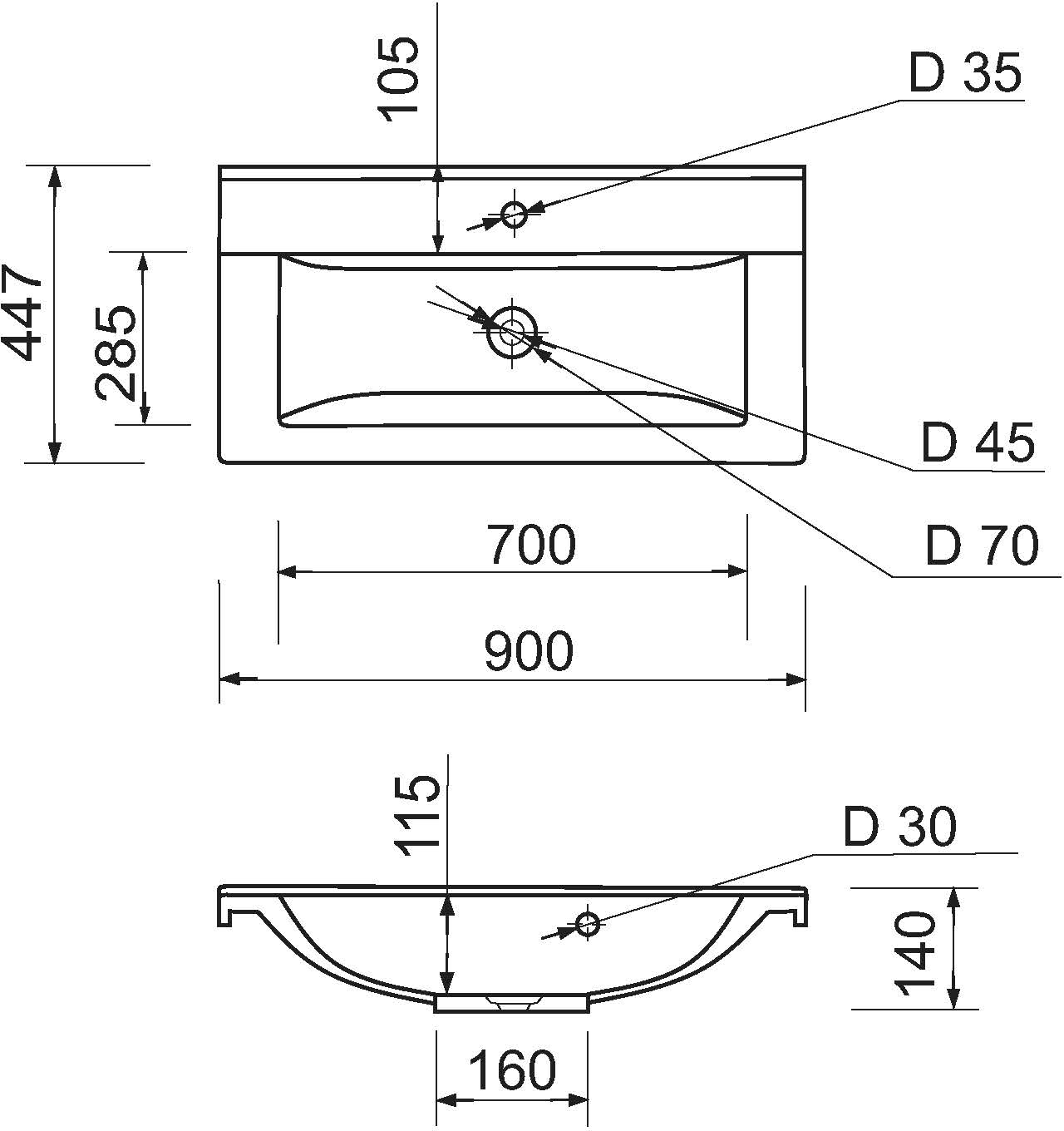 | Розташування отвору зливу | По центру |