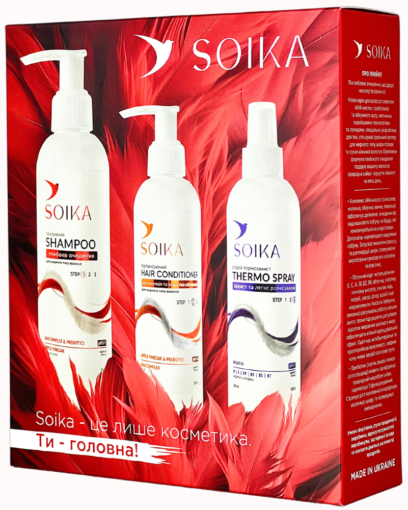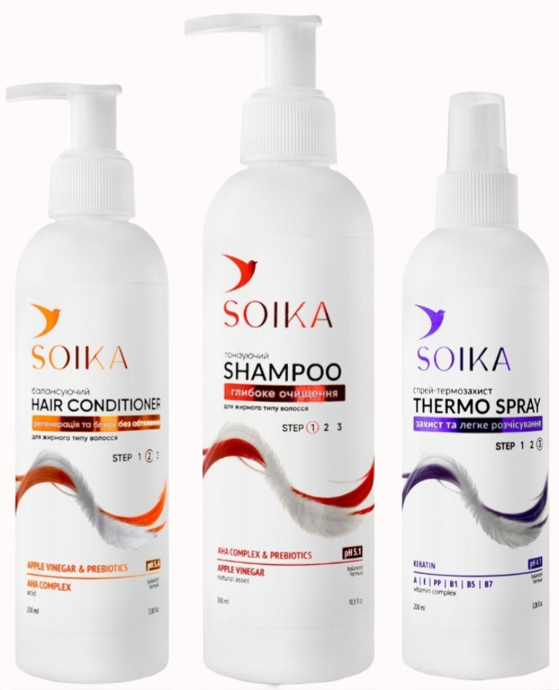 - Набір для волосся Soika 3в1 Глибоке очищення та захист (шампунь+кондиціонер+спрей)