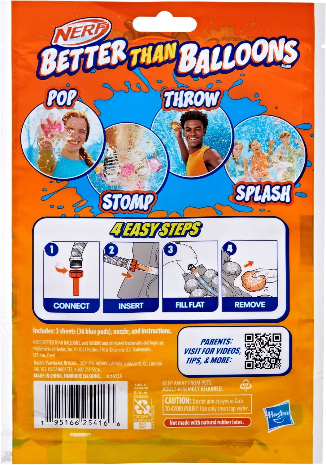 Nerf Better Than Balloons - це альтернатива повітряним кулям, яка зробила революцію у водних іграх! Яскраві водні капсули зручні для розваг на воді на свіжому повітрі без розчарувань. Інноваційна конструкція дозволяє швидко та легко наповнювати їх, а також надзвичайно легко очищати. Їх легко тримати та кидати для ігор у воді, вони лопаються, коли потрапляють у ціль.