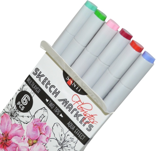 - Набір маркерів Santi sketch Floristics, 6 шт / уп. (390569)