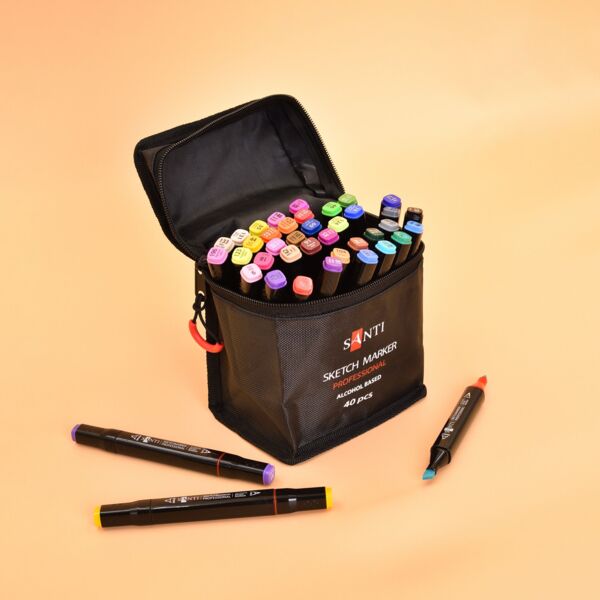 Набір спиртових маркерів Santi - це відмінний вибір для ілюстраторів, дизайнерів та всіх, хто любить малювати. Підходить для роботи в техніках скетчингу, каліграфії, манги, архітектурних ескізів, розмальовки ілюстрацій та багатьох інших. Спиртові маркери найкраще підходять для малювання на спеціальному щільному папері, призначеному для маркерів. Важливо знати, що на тонкому папері чорнило може просвічувати на зворотний бік аркуша.