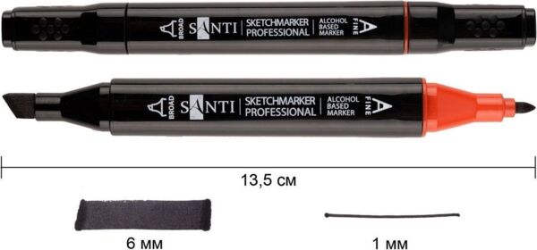 Набір спиртових маркерів Santi - це відмінний вибір для ілюстраторів, дизайнерів та всіх, хто любить малювати. Підходить для роботи в техніках скетчингу, каліграфії, манги, архітектурних ескізів, розмальовки ілюстрацій та багатьох інших. Спиртові маркери найкраще підходять для малювання на спеціальному щільному папері, призначеному для маркерів. Важливо знати, що на тонкому папері чорнило може просвічувати на зворотний бік аркуша.