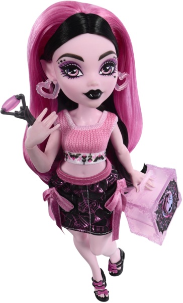 Лялька у м’якому в’язаному топі та спідничці запрошує вас зазирнути у свій таємний простір краси. Дракулаура знає, як важливо дбати про шкіру - недарма у свої 1600 років вона виглядає просто жах як неперевершено. Лялька повністю шарнірна, тож легко приймає найвиразніші пози.