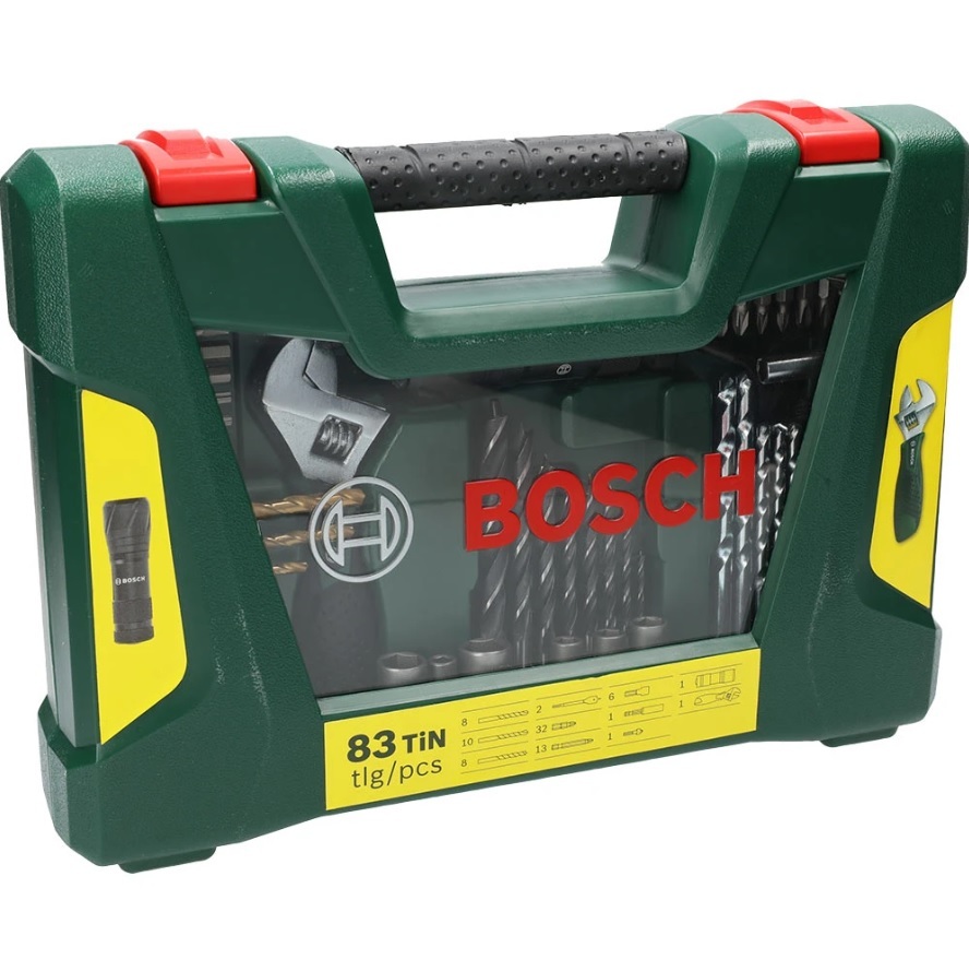 Bosch V-Line - набір оснащення, що складається з 83 предмета. Його можна назвати універсальним, тому в його склад входять всі необхідні матеріали, торцеві головки і біти, а також зенкер, універсальний магнітний тримач, світлодіодний кишеньковий ліхтарик та розвідний гайковий ключ. Все це повинно знаходитись під рукою під час ремонту або будівельних робіт.