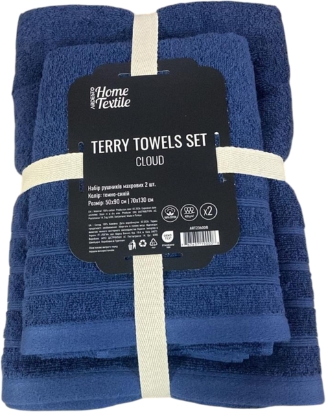 - Набір рушників махрових ARDESTO Cloud 50х90см, 70х130см, 2шт, 100% бавовна, синій темний (ART2360DB)