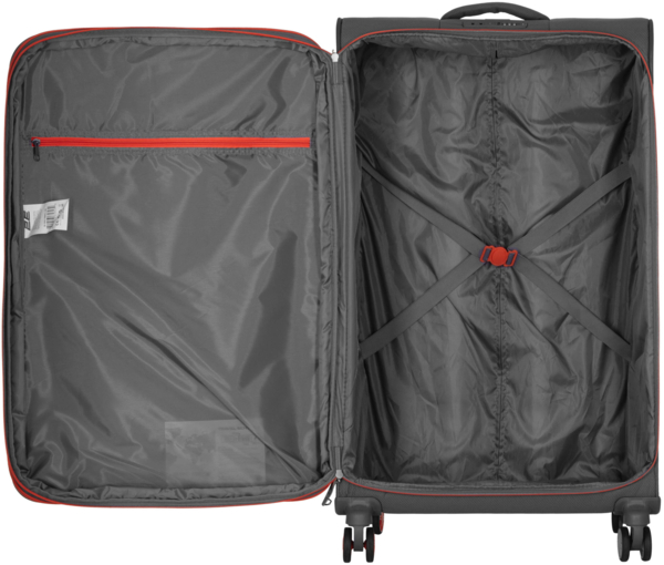 - Середня валіза (M) – 43×67×26/32 см, об'єм 64/78 л, вага 2,5 кг;