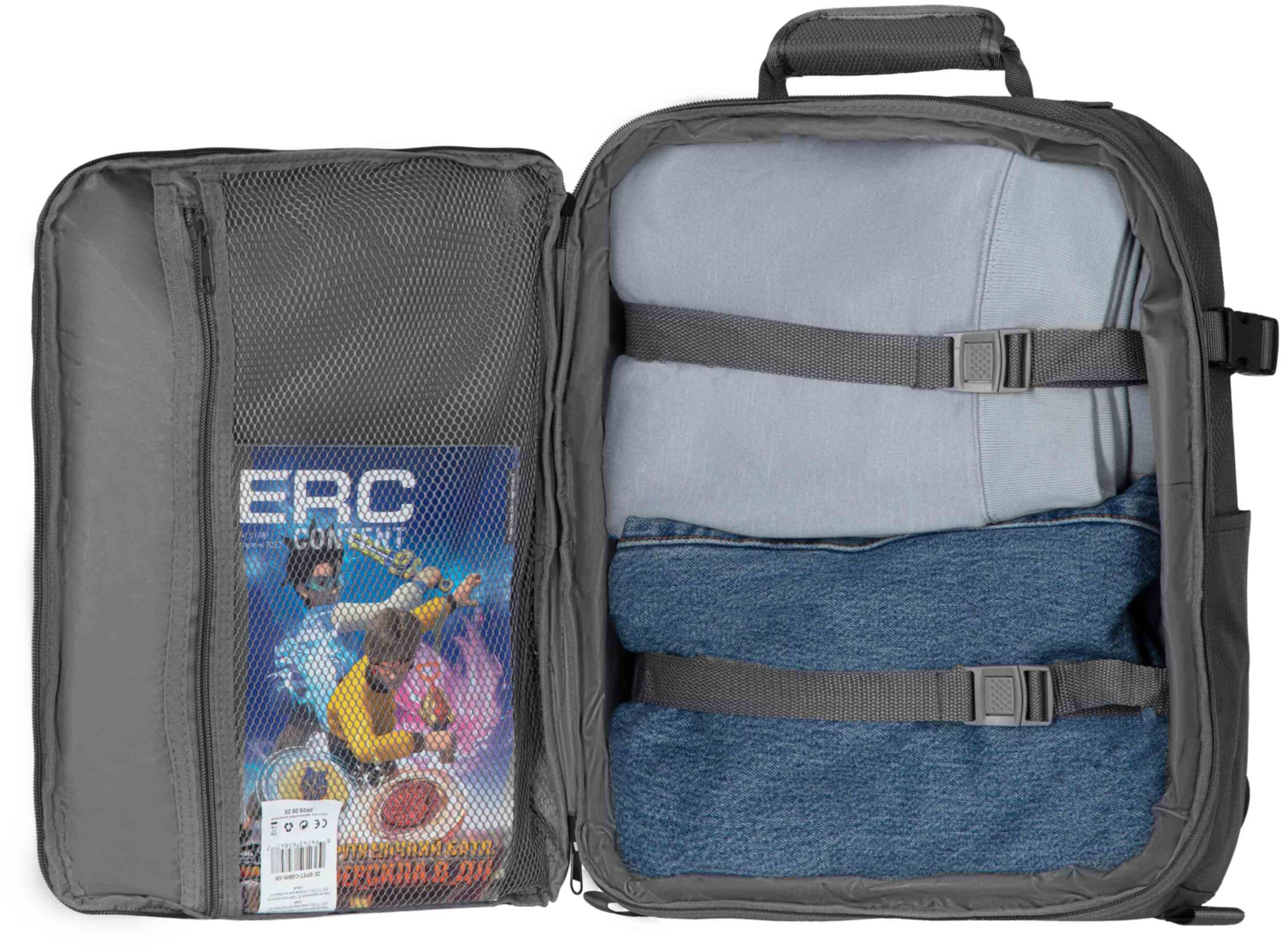 - Внутрішні еластичні ремені й кишеня на блискавці;