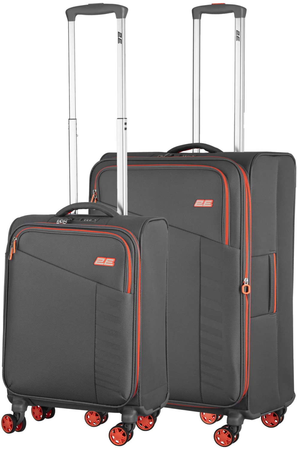 - Набір валіз 2E, Trek, (M+S), TSA, 4 колеса, + 2 рюкзаки Cabin (2E-BPET-CABIN-GR), поліестр, сірі