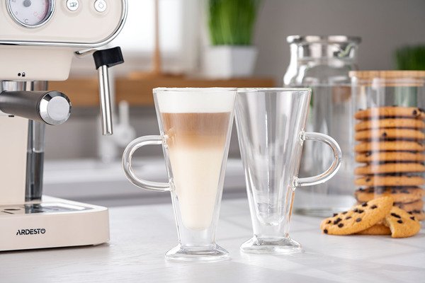 - Набір чашок з ручками ARDESTO з подвійними стінками для латте, 230 мл, 2 шт. AR2623GH