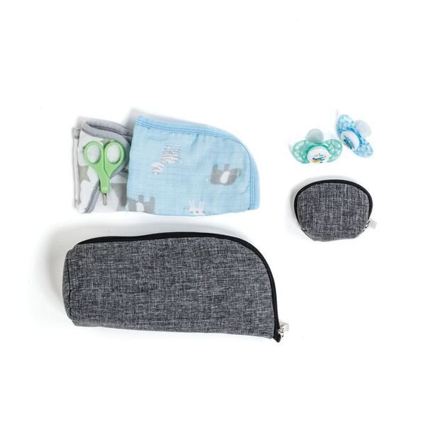 Взяла себе чехол и кошелек для пустышки именно серого цвета. Они как раз подходят к расцветке коляски. Довольно удобные аксессуары. Пустышка всегда в чистом виде, не валяется. В чехол ставлю бутылочку с водой или кашей и беру на улицу. Сохраняется постоянная температура. По размеру и чехол и кошелек стандартные, поэтому подходят для любой фирмы изготовителя пустышек.