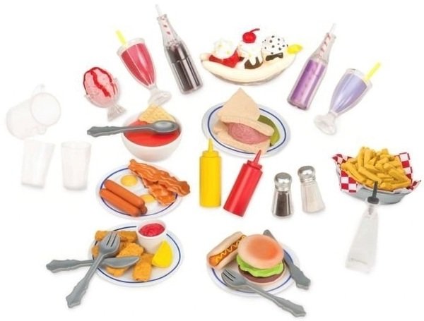 Малятка від 3 років часто проводять час за ляльками. Наряджають їх і, звичайно, годують. Ретро-їдальня – відмінна майданчик для кулінарних фантазій дітвори. У набір входить меблі, посудка, столові прибори. Можна грати з напоями і готовими стравами: кексиками, пончиками, печивом, тортом з відрізаним шматочком і ін. Десятки аксесуарів скрасять дозвілля дітвори.