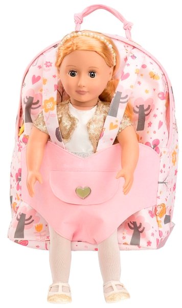 Рожевий рюкзак – це зручний і стильний аксесуар, в якому можна носити ляльки Our Generation. Завдяки зручній конструкції рюкзака, він пожойдет для будь-якої дівчинки. Ляльку можна розмістити на спині, і завжди носити з собою. Крім того, в ньому може поміститися все найнеобхідніше для ляльок.