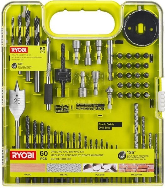 - Набор біт та свердел Ryobi RAKDD60, 60 шт