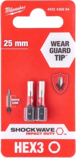 Набір біт Milwaukee Shockwave Hex3х25мм, 2шт (4932430894)