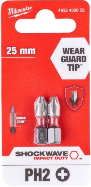 Набір біт Milwaukee Shockwave PH2х25мм, 2шт (4932430852)