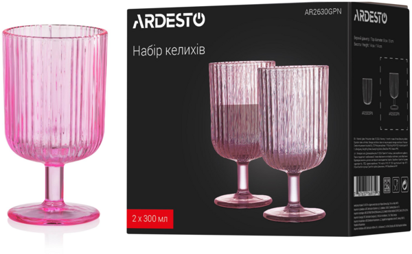 - Набір келихів ARDESTO, 300мл, 2шт, рожевий (AR2630GPN)