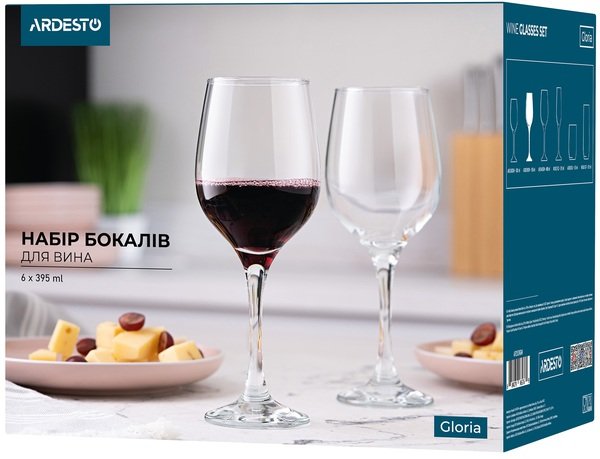 Схожі товари Набір келихів ARDESTO Gloria для вина, 6*395 мл (AR2639GW)