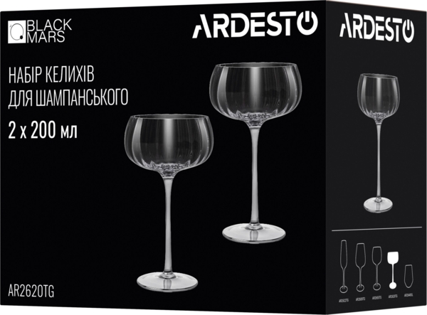- Набір келихів для шампанського ARDESTO Black Mars Orion 200мл, 2шт, скло, прозоро-cірий (AR2620TG)