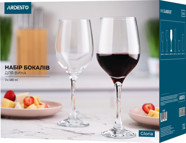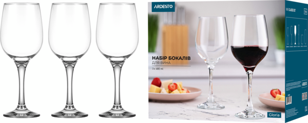 Схожі товари Набір келихів для вина ARDESTO Gloria 480мл, 3шт (AR2648GWT)