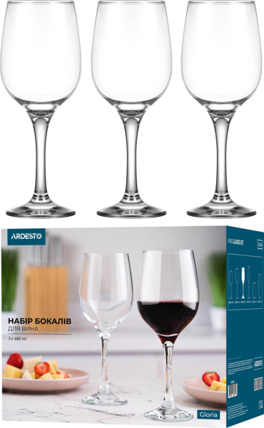 Набір келихів для вина ARDESTO Gloria 480мл, 3шт (AR2648GWT)