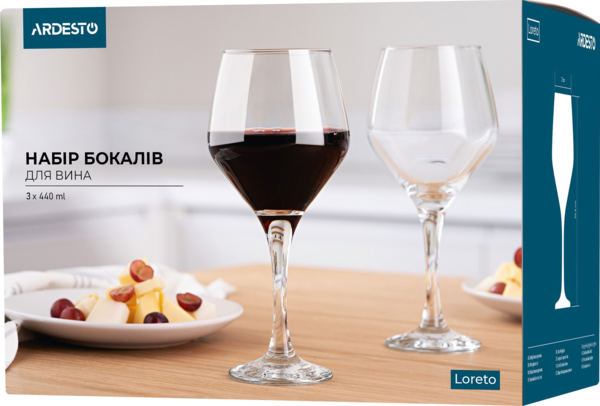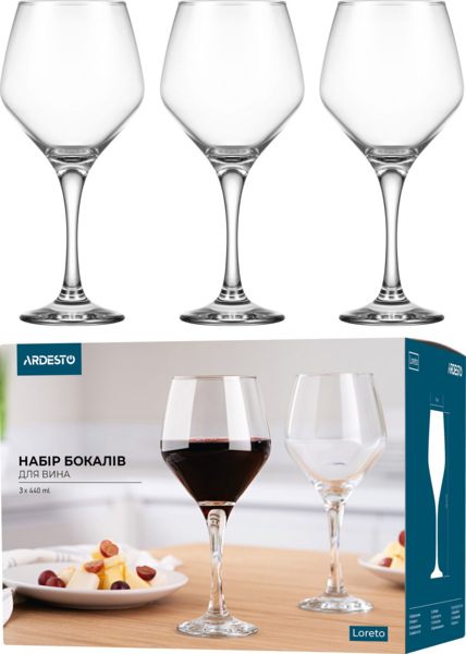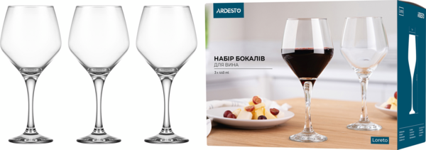 - Набір келихів для вина ARDESTO Loreto 440мл, 3шт (AR2644LWT)