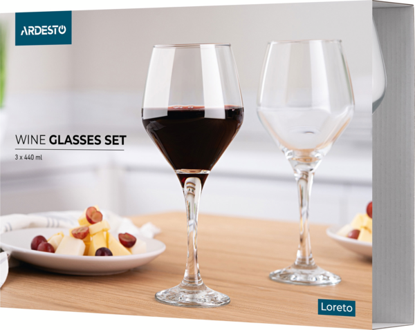Опис Набір келихів для вина ARDESTO Loreto 440мл, 3шт (AR2644LWT)