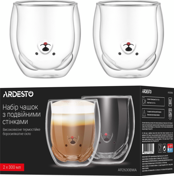 - Набір чашок з подвійними стінками Ardesto Animals, 300мл, 2шт (AR2630BWA)