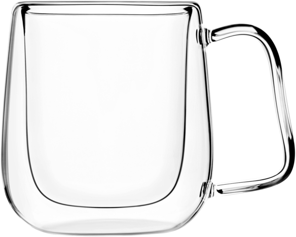 Набір чашок з подвійними стінками. До набору входять дві чашки об’ємом 250 мл кожна. Чашки виготовлені з термостійкого боросилікатного скла.