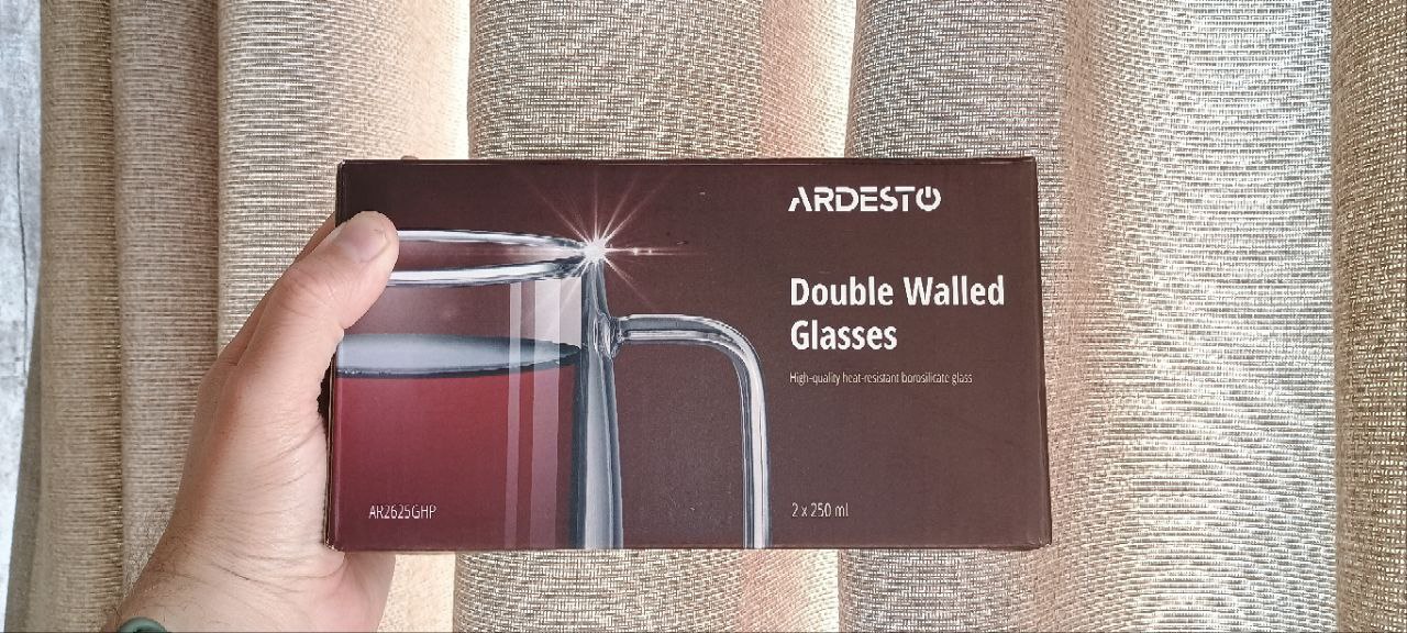- Набір чашок з ручками ARDESTO з подвійними стінками, 250 мл, 2 шт (AR2625GHP)