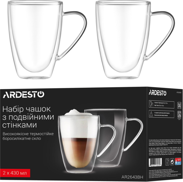 Набір чашок з ручками і подвійними стінками ARDESTO, 430мл, 2шт (AR2643BH)